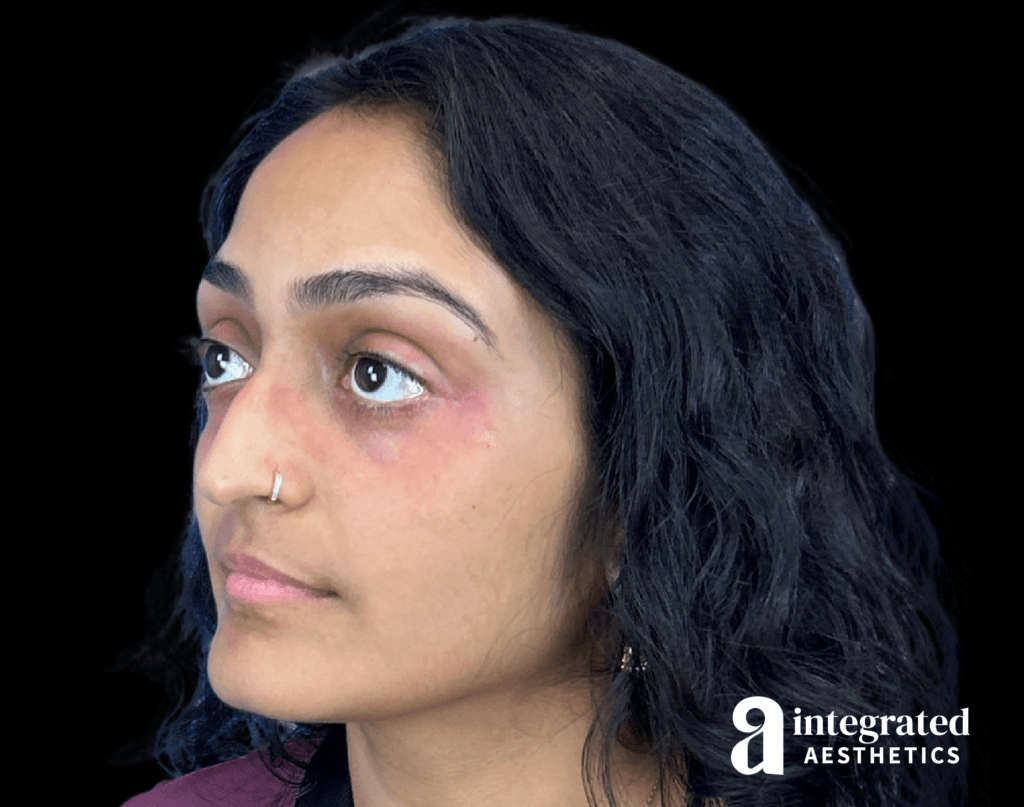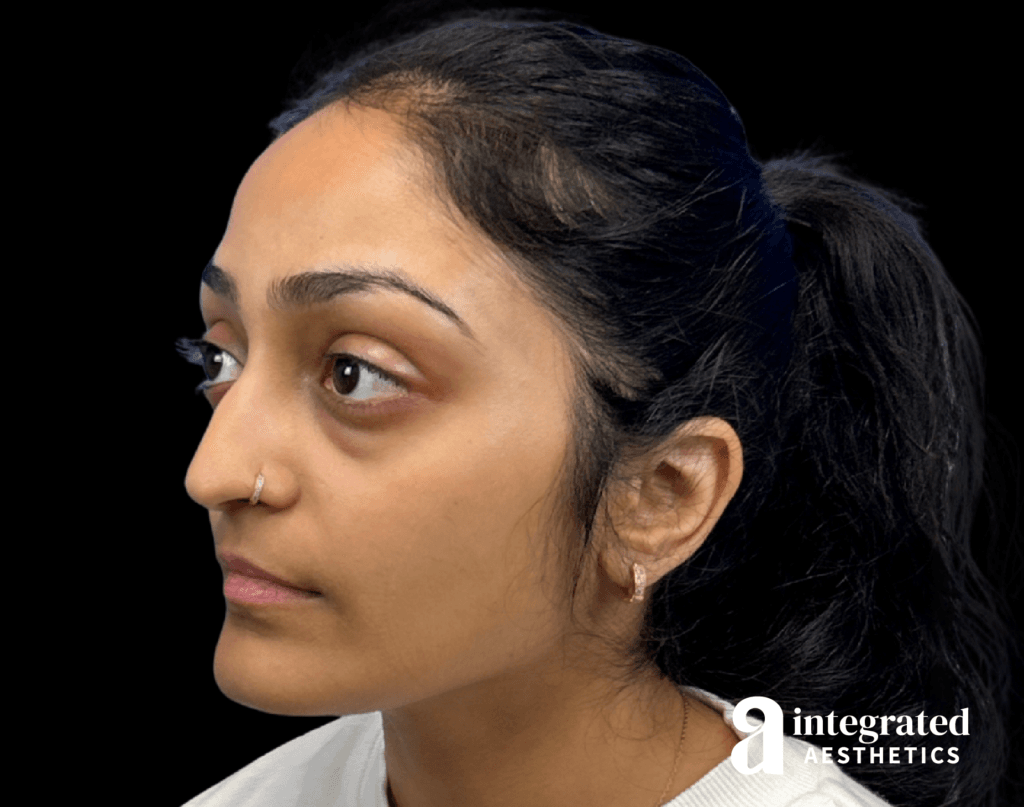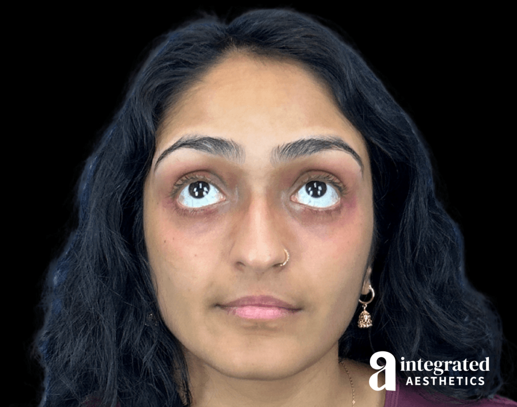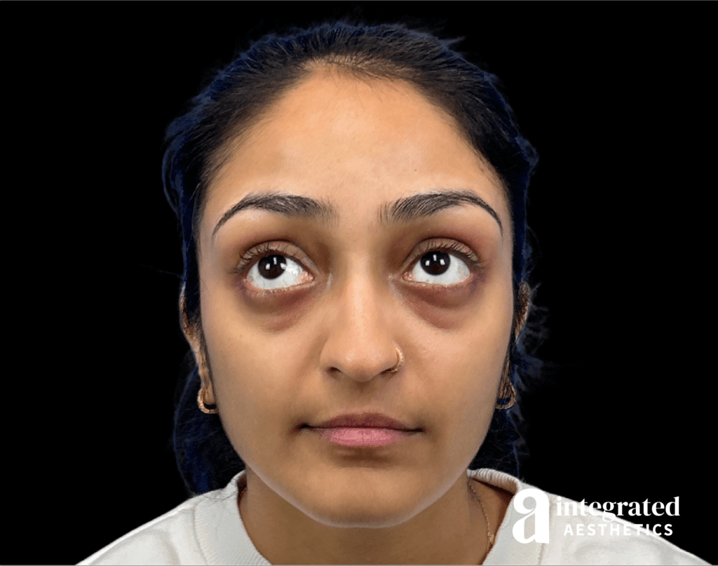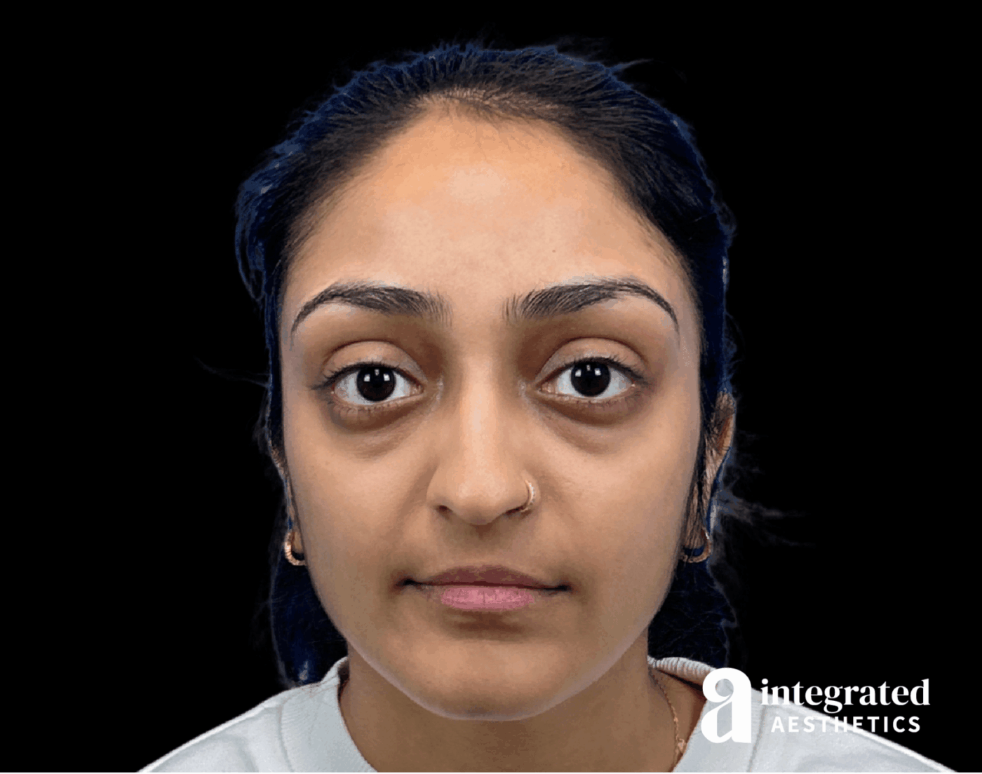 The patient is a 28-year-old female who had concerns about the appearance of her lower lids, including a tired appearance and pigmentation. Dr. Cho performed a bilateral lower lid blepharoplasty to address these concerns. The after results are 4 months post-procedure.