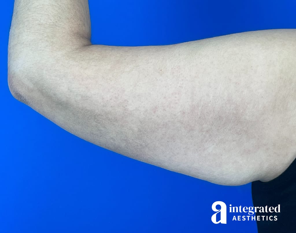 This 46-year-old female patient sought treatment to improve the appearance of her arms. She underwent one session of Emsculpt followed by three sessions of Emsculpt Neo. The results shown are two months after the start of her treatment.