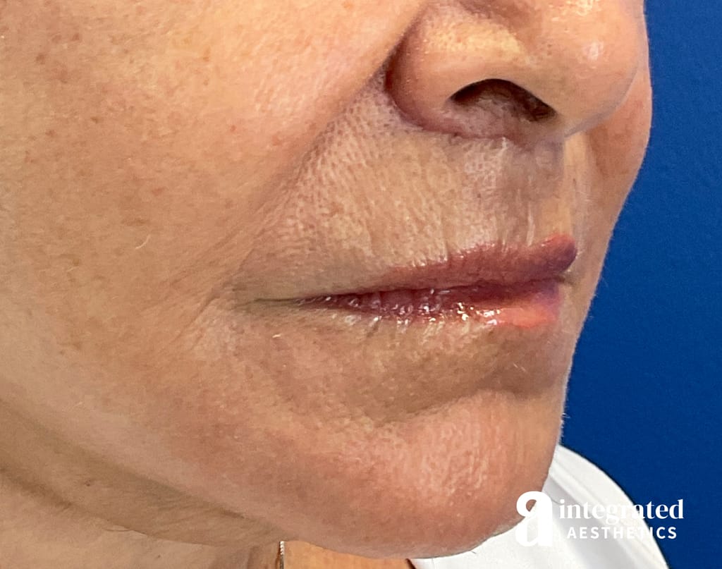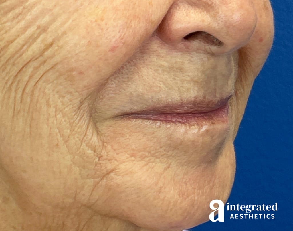 The patient is a 73-year-old female with concerns about the laxity, texture, and appearance of the skin around her mouth. Dr. Cho performed a lip lift and outer corner lift to address these concerns. The after results are shown 3 months post-procedure.