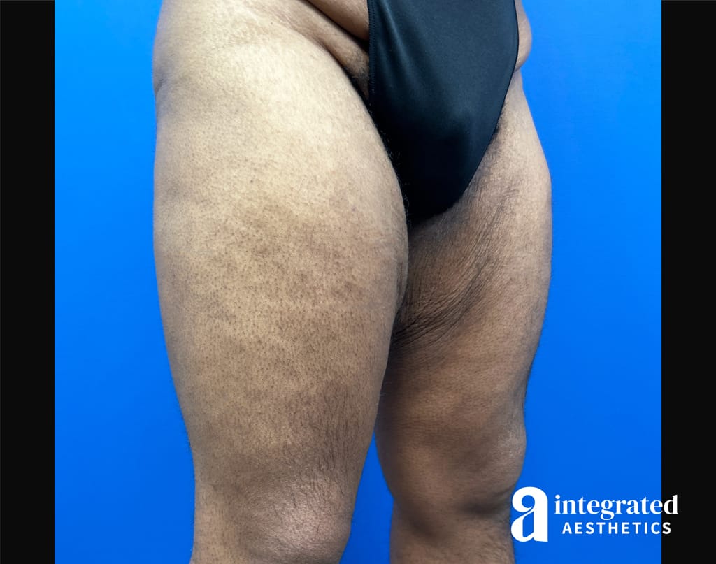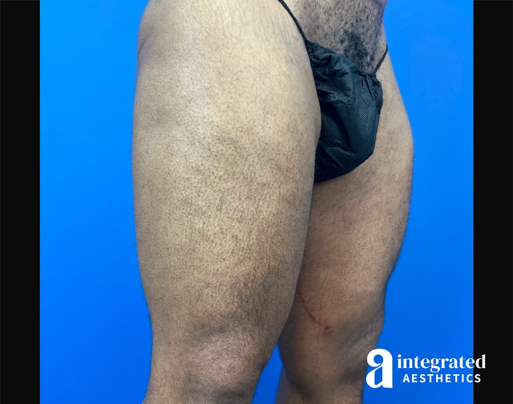 The patient is a 28-year-old male who had concerns with the appearance of his thighs. To address these concerns, Dr. Climov performed a thigh lift. The after results are 4 months post-procedure.