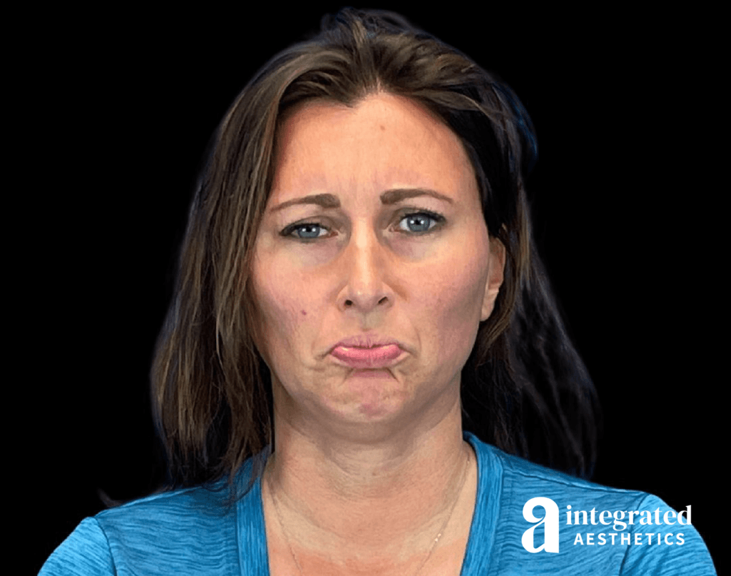 The patient is a 37-year-old female who had concerns about fine lines and wrinkles. Dr. Chiang used wrinkle relaxer (Botox) for the lower brow, chin, and neck bands to address these concerns. The after results are 3 weeks post-treatment.